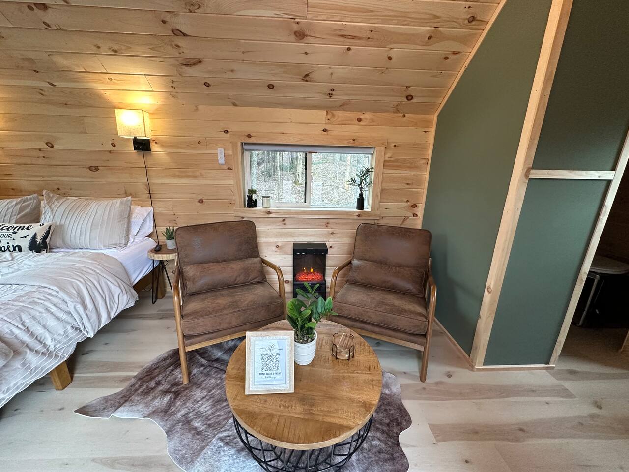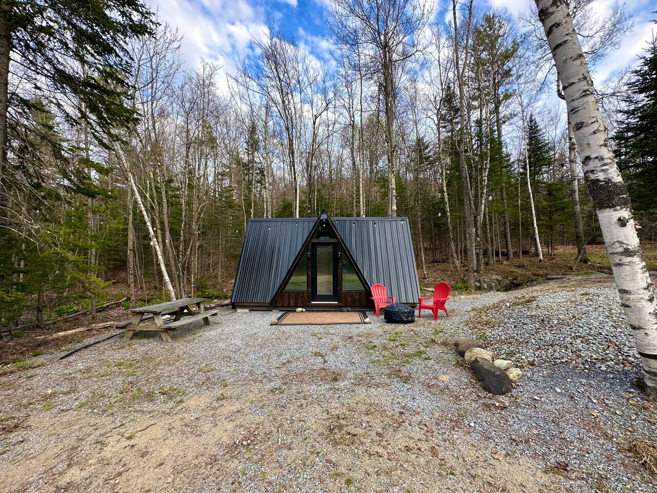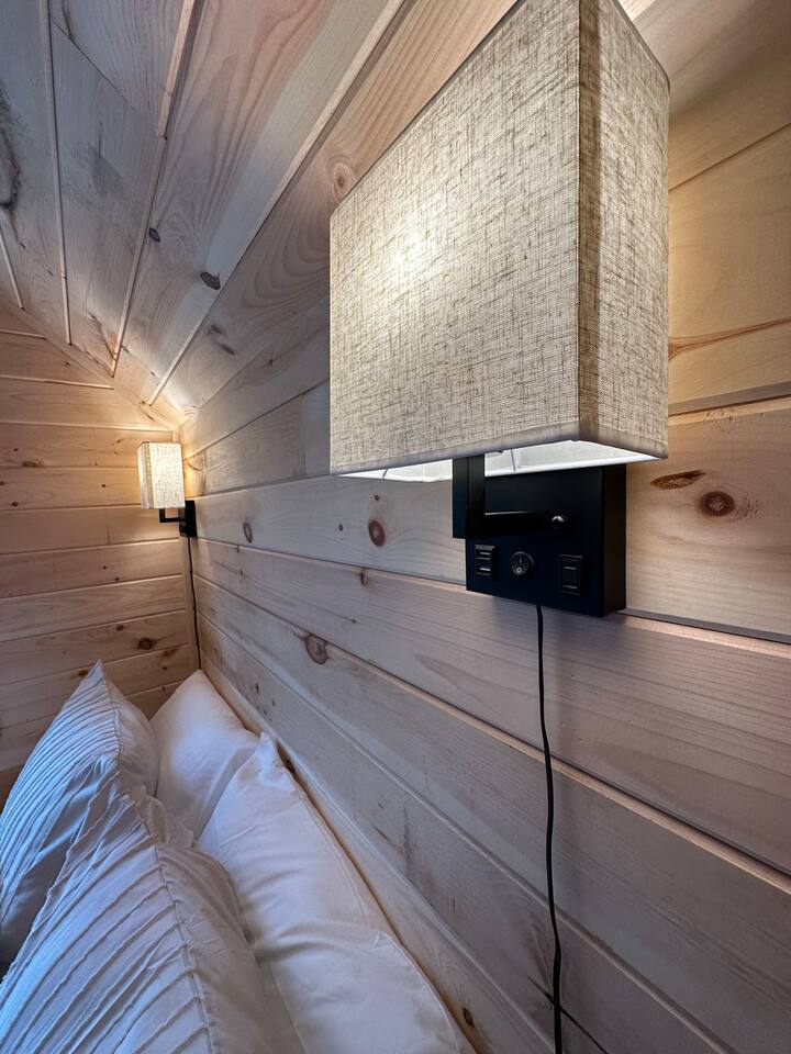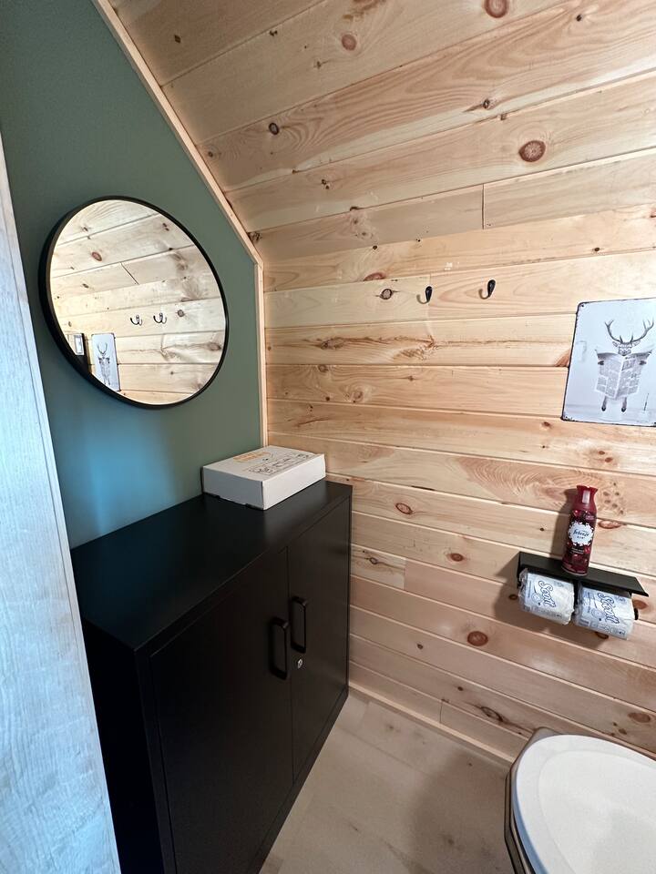 **BEFORE BOOKING PLEASE READ THE “OTHER THINGS TO NOTE” SECTION. It has details you NEED TO KNOW before booking.** **2 CABINS ON THE SAME PROPERTY. MUST RESPECT THE NEIGHBORS/GUESTS IN THE RED CABIN. YOU MAY RENT BOTH CABINS FOR MORE PRIVACY OR WITH OTHER FRIENDS AT A DISCOUNTED RATE. OTHER CABIN CAN SLEEP UP TO 4 PEOPLE. BOTH CABINS ARE NOT ALWAYS RENTED AT THE SAME TIME. PLEASE INQUIRE. ** We provide everything you need for a comfortable stay at an off-grid cabin including electricity and a natural brook for your water source. This 240 sq ft. cabin sleeps up to 2 people comfortably. The A-frame cabin is surrounded by pine wood and natural lighting. It has a beautiful brook running through the property all year-round. Perfect to sit next to the brook sipping your coffee or glass of wine while hearing the sound of the water and trees. The location is breathtaking and great to disconnect from the outside world. ITEMS PROVIDED/FEATURED: - Queen bed- sleeps 2 - Linens, comforters and pillows - Toilet paper - Incinerator toiler (inside) - Hand sanitizer, hand soap & dish soap - 2 bath towels / hand towel - WIFI - Smart TV - Bluetooth Radio - Boardgames/ cards / Adult coloring book - Coleman tabletop grill/ Grill utensils - Fire pit (firewood not included) - First-aid kit - Ambient colorful lamp - Rechargeable Lantern - Kitchenette: salt & pepper, refrigerator, microwave, toaster, electric kettle, electric griddle, plates, bowls, utensils, cooking utensils, cups, wine glasses, can opener, wine opener, scissor, roasting sticks (for s’mores), misc. - Natural brook for water source - Immersion bucket water heater - Bucket Is there heat or AC? AC unit and ceiling fan for cooling. Heating unit and electric fireplace for heat. Is there a bathroom? Half bathroom with an incinerator toilet and exhaust vent inside the cabin. Hand sanitizer for cleaning hands. Is there electricity? Yes! We provide 100amp electricity. Don't worry you will have WIFI, lots of light, a smart tv and cooking essential. We provide a rechargeable lantern for hanging out by the fire pit or walks. Is there firewood? We don’t provide log wood for the fire pit, but if you want to bring an axe you can use all the tree bark that’s stacked up. If you don’t want to chop logs, then you can buy some packs from the nearest market. LITTLE RED CABIN (other listing on property) https://www.airbnb.com/slink/DE2v6is3