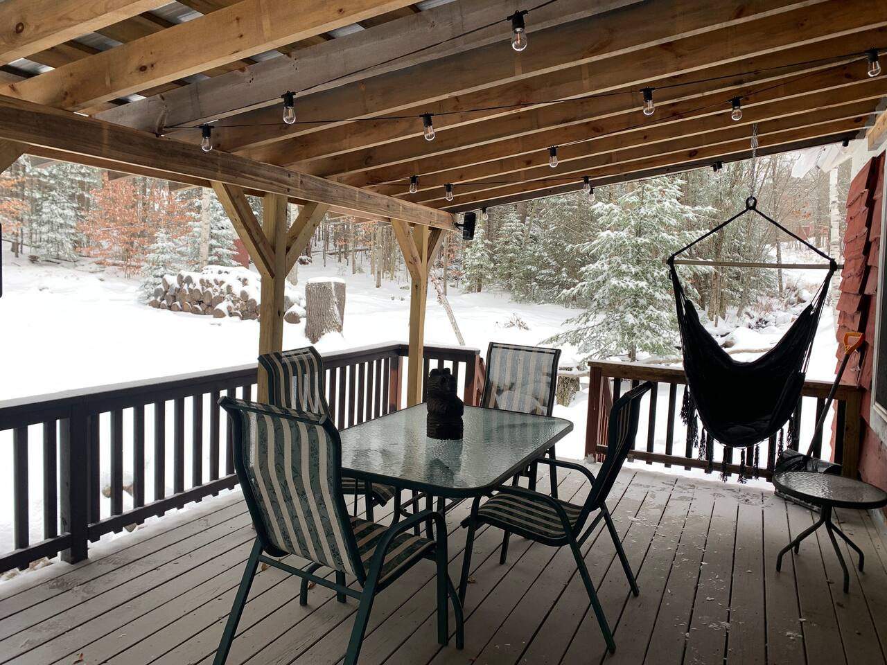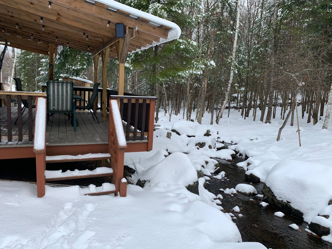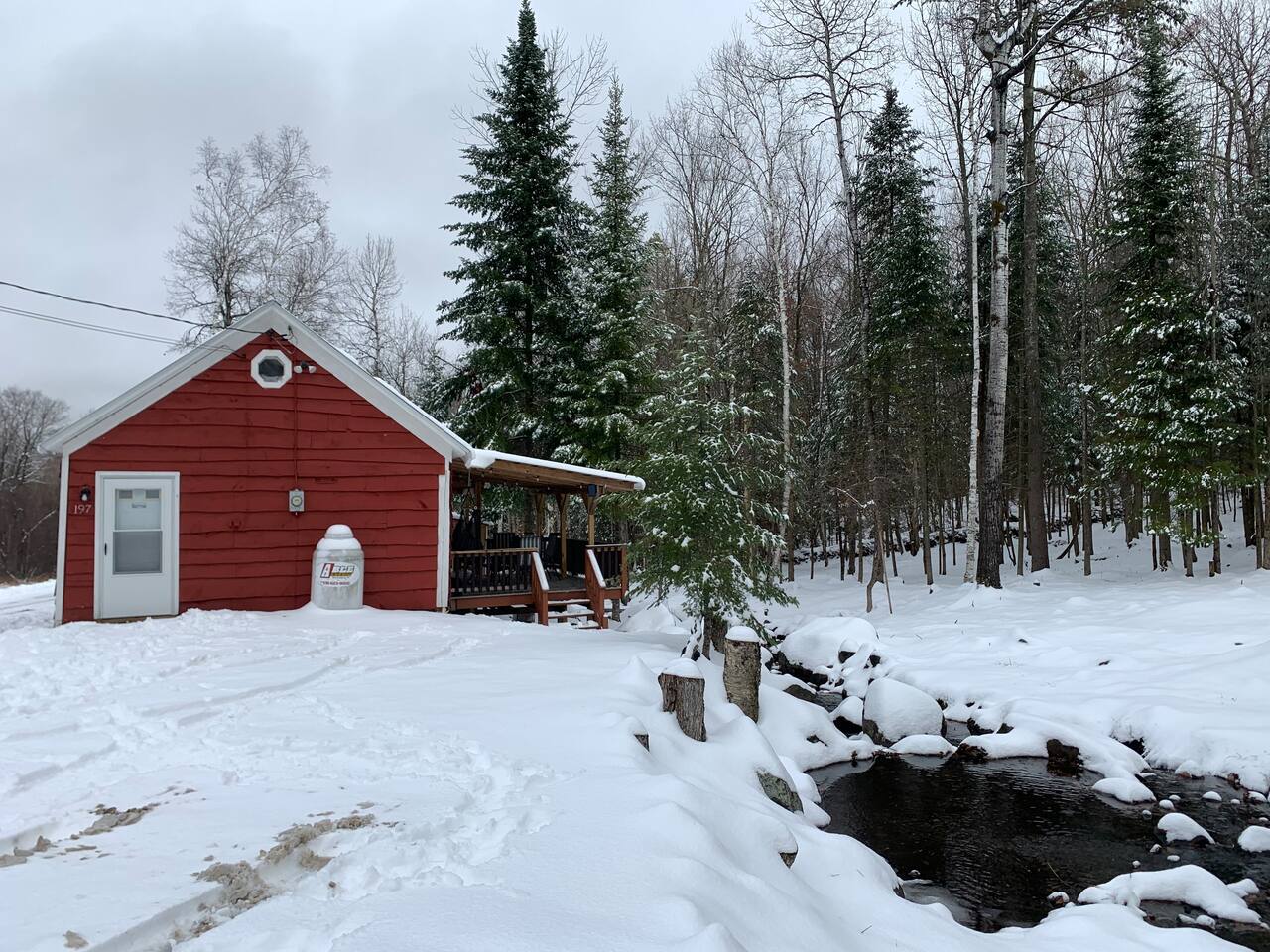 **MUST READ AND AGREE BEFORE BOOKING** - WINTER TIME- it is absolutely necessary to bring an AWD vehicle if it snows/ rains a lot. There are hills getting to the cabin. It is also necessary to get trip insurance during winter if it’s expected to snow. I cannot control the weather. - **2ND A-FRAME CABIN ON SAME PROPERTY AVAILABLE TO BOOK TOGETHER FOR A CHEAPER RATE- SLEEPS 2 (LITTLE BLACK A-FRAME)** Both have their own privacy and it’s still considered remote. Sometimes they are not both rented at the same time. Please inquire! IT IS ABOUT 150-200FT AWAY. -Our bathroom is a HEATED OUTHOUSE with a BRAND NEW INCINERATOR TOILET (odor free and completely sanitary). ***1) USE BOWL LINER 2) THEN FLUSH PEDAL 3) THEN PRESS INCINERATOR BUTTON AFTER EVERY SINGLE USE #1 AND #2** - We have WIFI. Sometimes it can be spotty due to the remote area, especially in the winter (There is nothing I can do on my end) It will go on automatically. If you’re coming for the WIFI, this place IS NOT FOR YOU. -There is a rough dirt road that leads you to the cabin. During times of rain or snow this road can be VERY muddy. We recommend AWD vehicles, though most trucks or SUV’s should make it just fine. Some cars could handle it, but there’s a possibility of getting stuck in the event of snow or rain. Please take this into consideration while planning your trip! - There is NO running water. You will get your water source from the brook and 50 gal. rain barrel on the property. Bring drinking water (5 gallon and bottled). We recommend bringing baby wipes to help with hygiene. If you use the dishes, keep in mind you’ll need eco friendly soup to clean the dishes outside. - SHOWER- You use the water from the brook or rain barrel with a bucket. The pop up shower tent is right under the stairs. We provide a portable electric shower head and immersion bucket water heater/thermometer (85 degrees is comfortable for a hot shower). - WE ARE IN THE ADIRONDACKS SURROUNDED BY NATURE so there will be wildlife, bugs, and webs every now and then. We have an exterminator go out quarterly and our cleaner will do their best to keep the bugs out. Bring extra bug spray. - The cabin is located 25 minutes from the nearest convenience store and gas station (everything is on main street- you will pass it on the way to the cabin). So make sure to get what you need before arriving. - We just installed a brand new powerful 10,000 BTU LG AC unit that cools the entire cabin. There is a cast iron propane gas fireplace for heating. We also provide space heaters for extra warmth and a ceiling fan/portable fan for convenience. - DO NOT charge EV cars with cabin. Not enough voltage to withstand that. - We provide WIFI, FREE NETFLIX and FIRE STICK for streaming. Do not unplug routers at any point during your stay. - 1 Dog is allowed during your stay for an additional $50 fee (with approval). Must add pet fee in booking inquiry. They MUST BE TRAINED and HOUSE BROKEN. We ask that dogs DO NOT get on the beds or couch out of respect for other people's allergies. Bring a dog blanket/ bed for your pet to stay off the carpet/rugs. Never leave them unattended/loose in the cabin. Must bring a crate. PICK UP AFTER YOUR DOG AND WALK THEM AWAY FROM THE PROPERTY (property must be clean/sanitary for the next guests.) $500 FEE IF EVIDENCE OF PETS ON FURNITURE OR WASTE LEFT ON PROPERTY. KEEP LEASHED AT ALL TIMES OUT OF RESPECT FOR GUESTS/DOGS IN THE OTHER RED CABIN. *NO CATS ALLOWED* - Must share your ID- for security purposes only. - NO SMOKING inside the cabin. $500 FEE IF SMELL/ EVIDENCE IS FOUND. If smoking outside, do not throw buds on the floor or deck (only in garbage). - ELECTRIC CARS- You CANNOT CHARGE your car at the cabin. Both cabins are connected together and does not support enough voltage for your vehicle. Please come prepared and fully charged. ***It's very important for us to be upfront about all of this, as we do not want to be dinged in our reviews for things out of our control. So please be mindful that this is and was always meant to be an outdoor experience. If you DO NOT like the outdoors, this isn't the place for you.