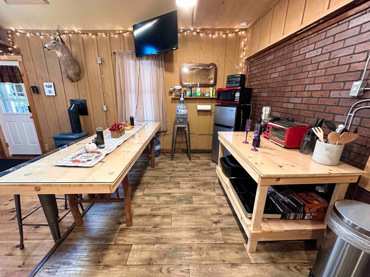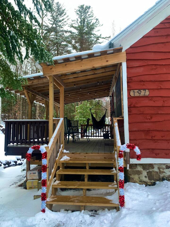 Welcome to "Kim's Kamp" at the Adirondacks! The ultimate off-grid GLAMPING experience! This historic Little Red Cabin was once a school house in the early 1900s, how cool is that? The interior decor highlights the old school and was curated to provide you with comfortable amenities while staying true to the camping experience. This is an off-grid cabin with NO running water but has electricity. We are located only 28 min. from Lake George, 20 min. from Gore Mountain, Revolution Rail, & trails.